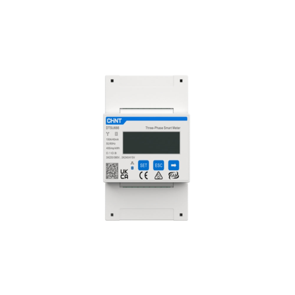 Single-phase (1P) energy meter designed for Anker Solix X1 hybrid inverter systems. Measures current, voltage, power, and energy flow (import/export) up to 100 A. Compact DIN-rail design with RS485 (Modbus RTU) communication for accurate energy monitoring.