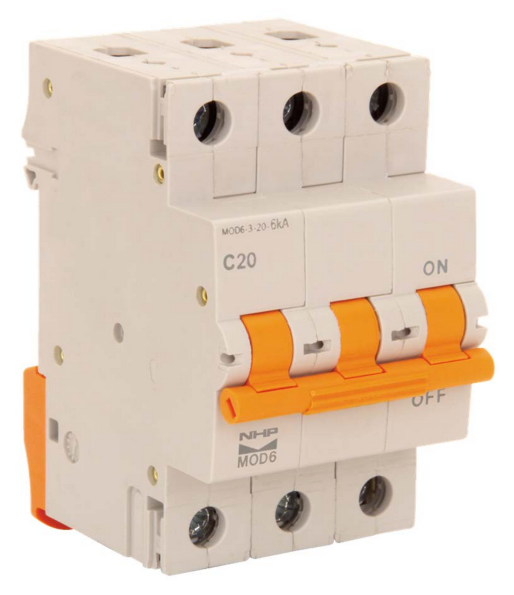 The NHP MCB 3 Pole 32A 6kA C Curve (MOD6332) is a reliable miniature circuit breaker designed to protect electrical circuits from overloads and short circuits. Rated at 32 amperes with a 6kA breaking capacity, it provides effective multi-phase protection for residential, commercial, and industrial applications.