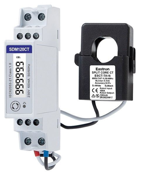 The SDM120CT 100mA 1P Multifunction DIN Rail Meter from the S6 Series is a compact and highly accurate energy metering solution designed for single-phase systems. With support for both energy export and consumption monitoring, it is ideal for residential solar installations, EV chargers, and energy-efficient buildings.