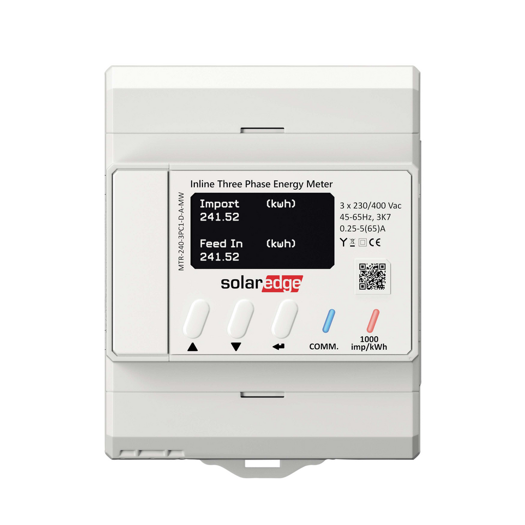 The SolarEdge Inline Meter - 3 Phase 65A is a compact and reliable energy monitoring device designed specifically for SolarEdge inverter systems. Ideal for residential and small commercial installations, this inline meter accurately measures imported and exported energy, helping you optimize solar production and track consumption with precision.